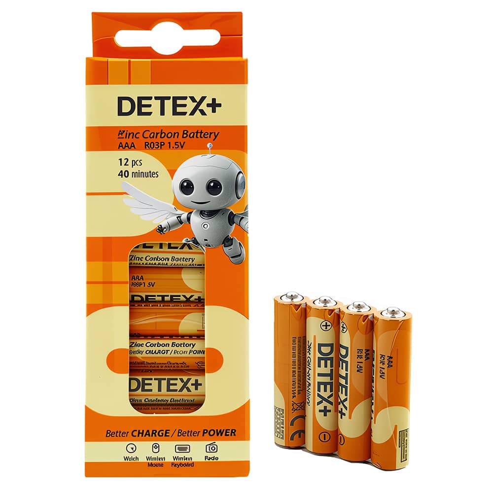 باتری نیم قلمی دتکس پلاس R03P بسته دو عددی +DETEX