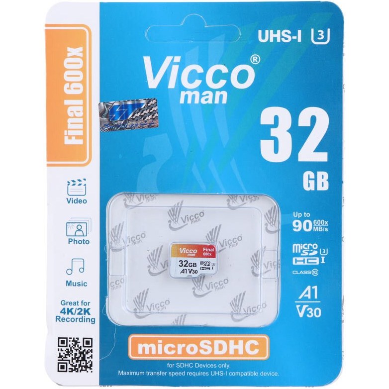 / رم میکرو 32 گیگ ویکومن Vicco Man Final 600x A1 V30 U3 C10 90MB/s