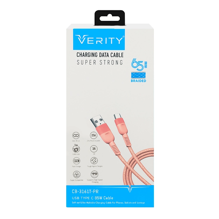 کابل دیتا و شارژ Type-C VERITY مدل 3161 صورتی عدد