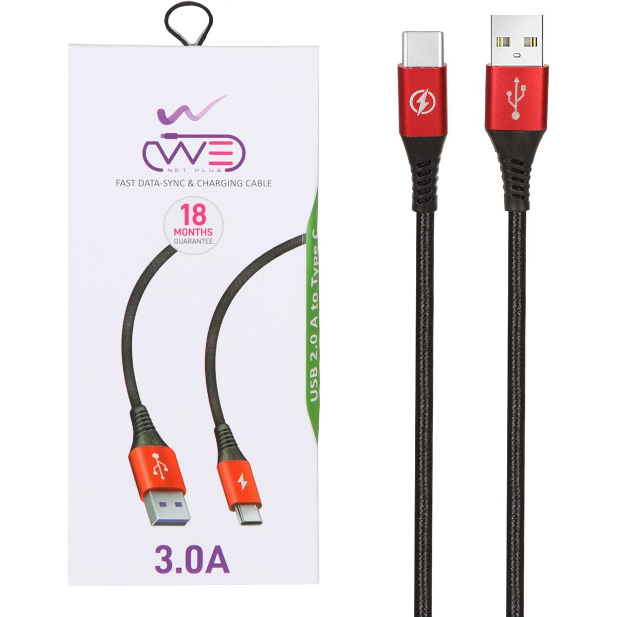 کابل شارژ کنفی فست We-net Plus Type-C مدل ETW 003 – مشکی قرمز